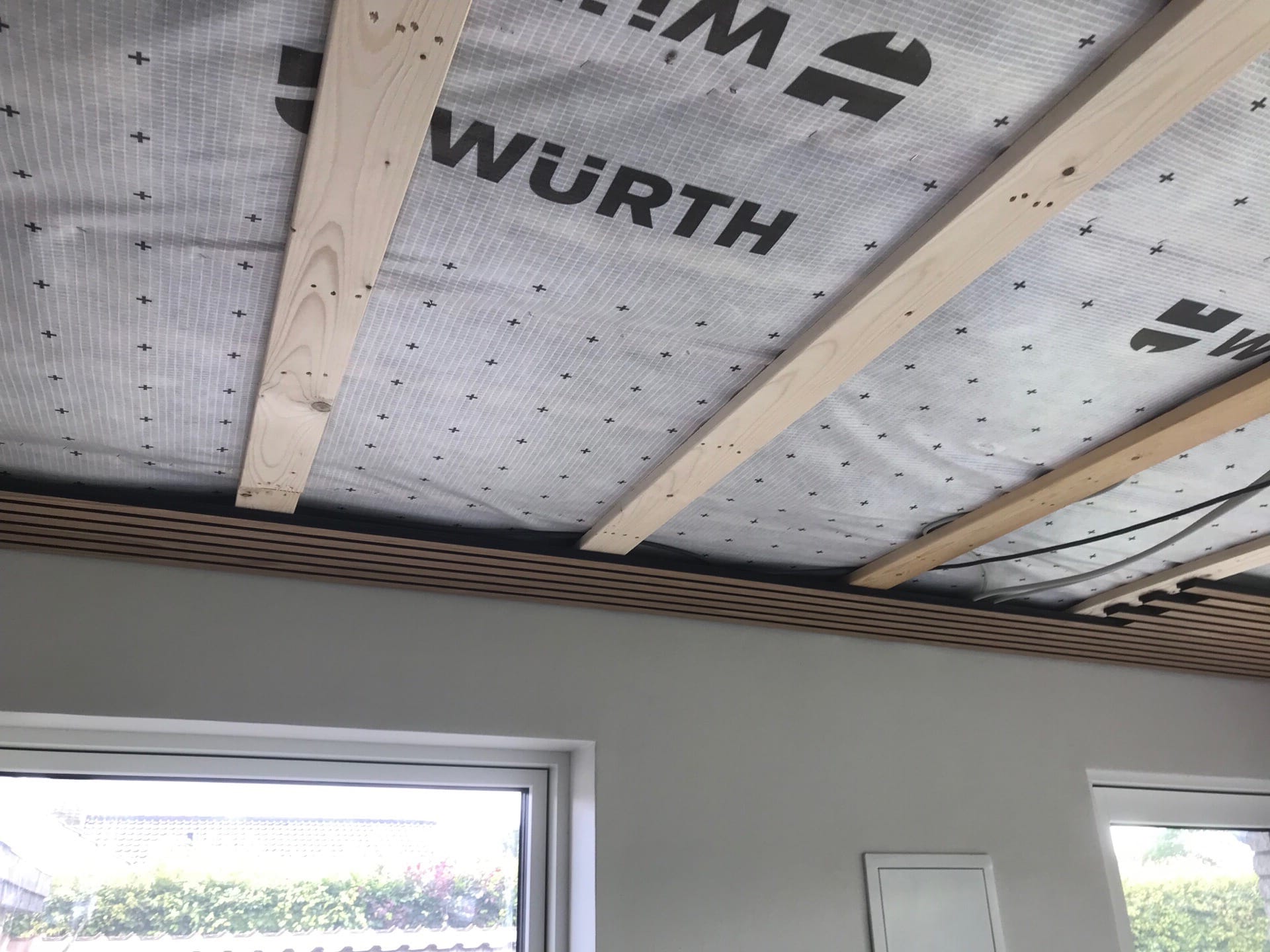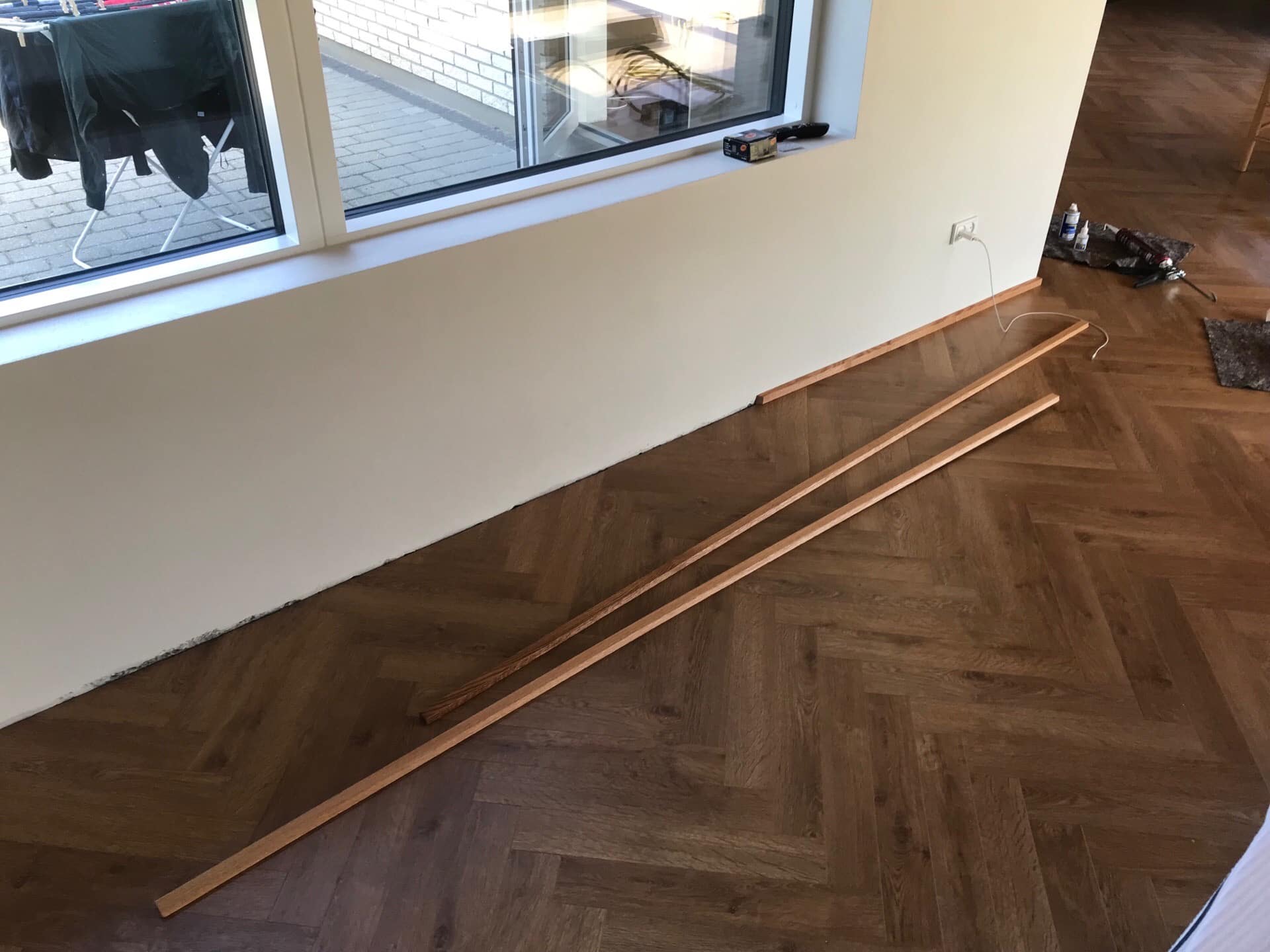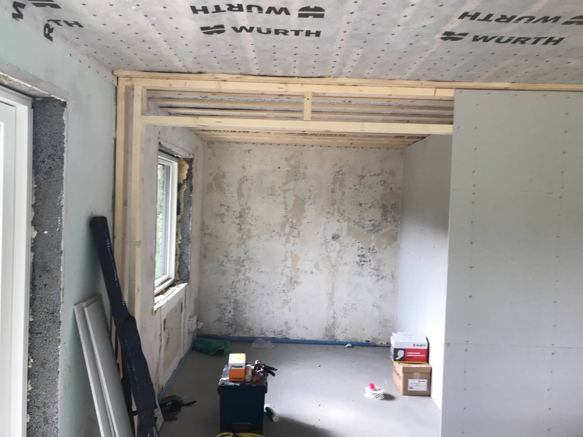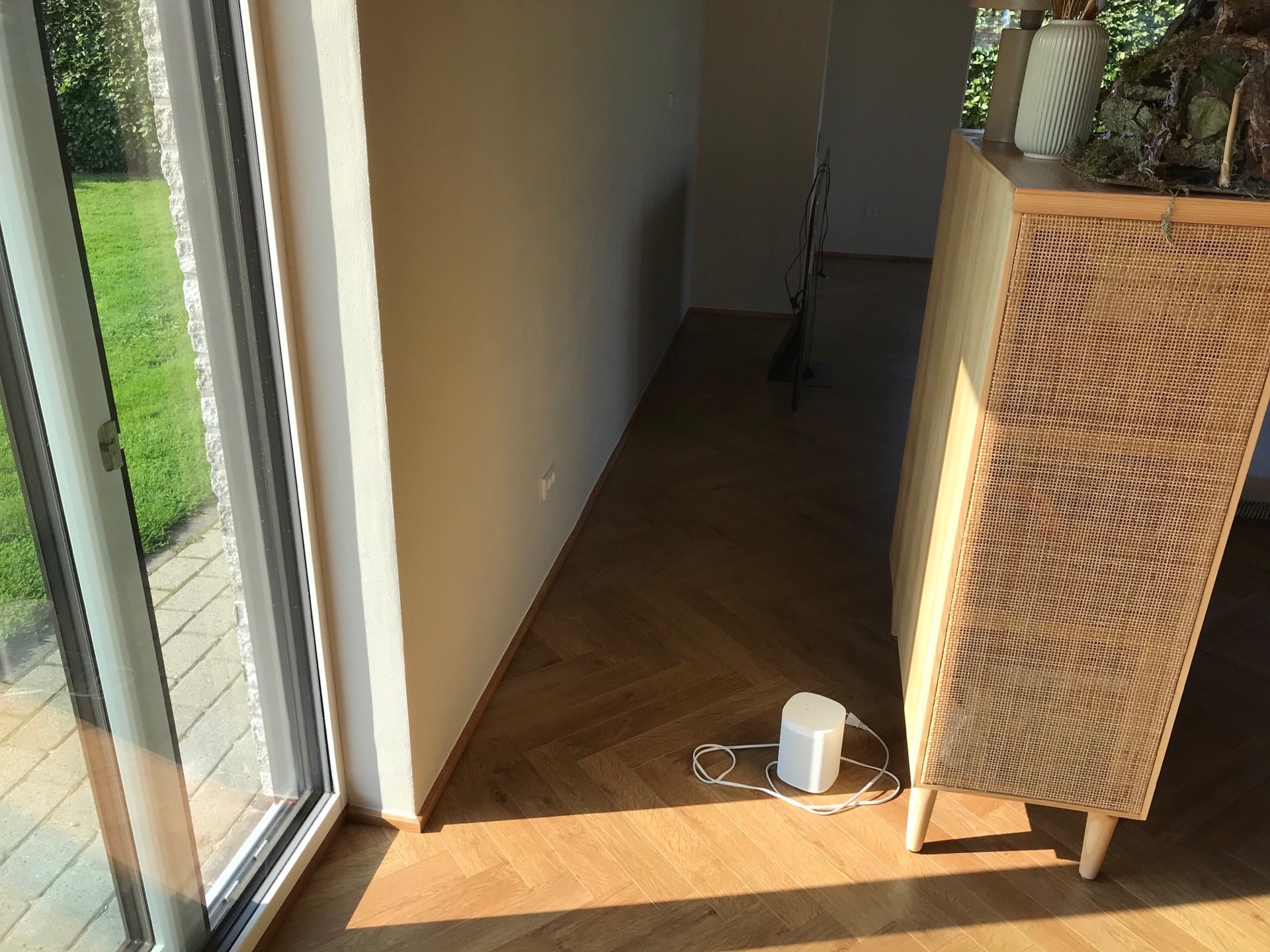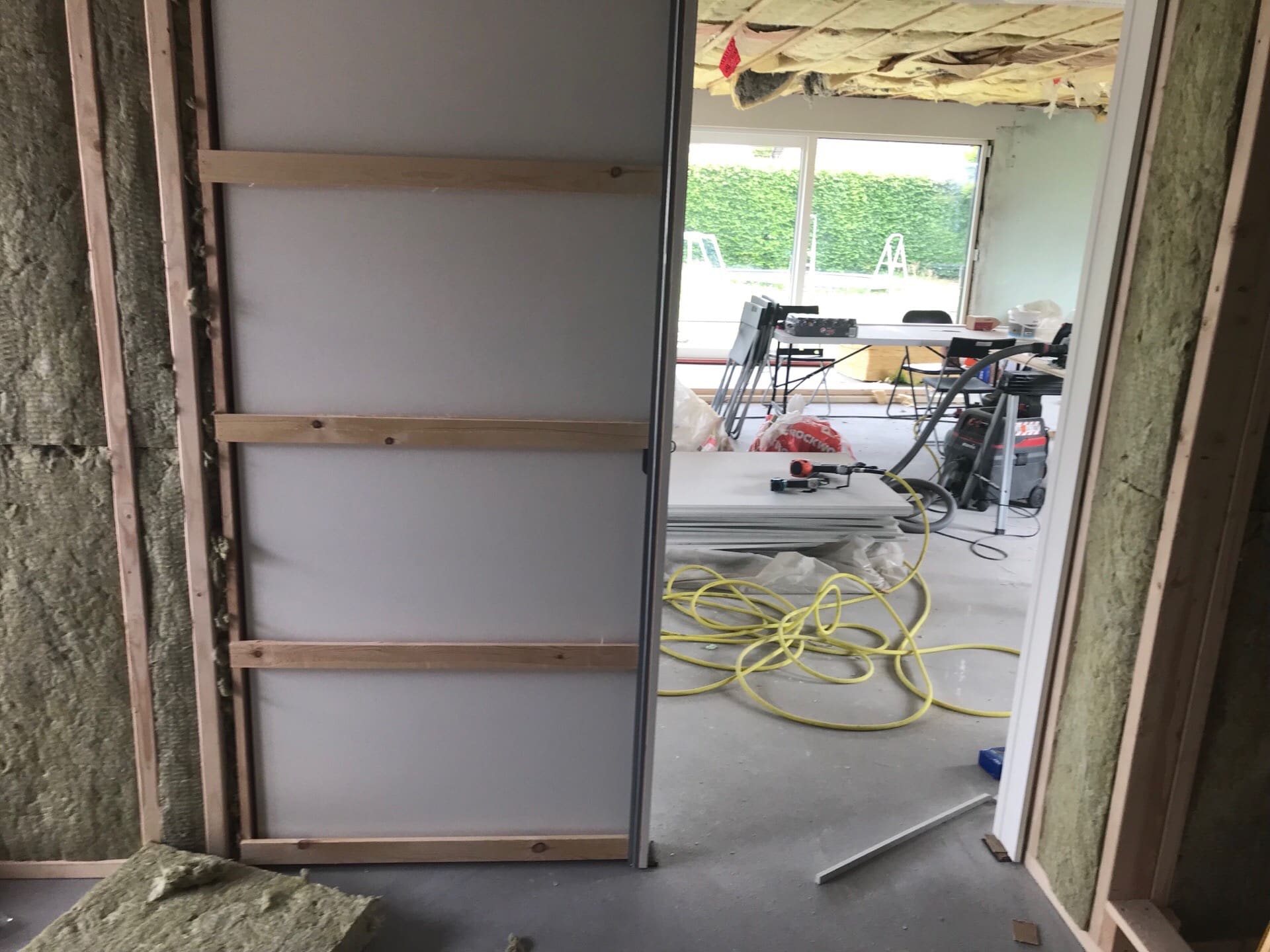 Kunden har selv lagt sildebensgulvet og monteret køkken, jeg har bl.a. hjulpet med nye lofter inkl. dampspærre og forskalling, nye vægge inkl. 2 stk. skydedøre, egetræs fodlister og et skab til installationerne inkl. bænk med opbevaring.